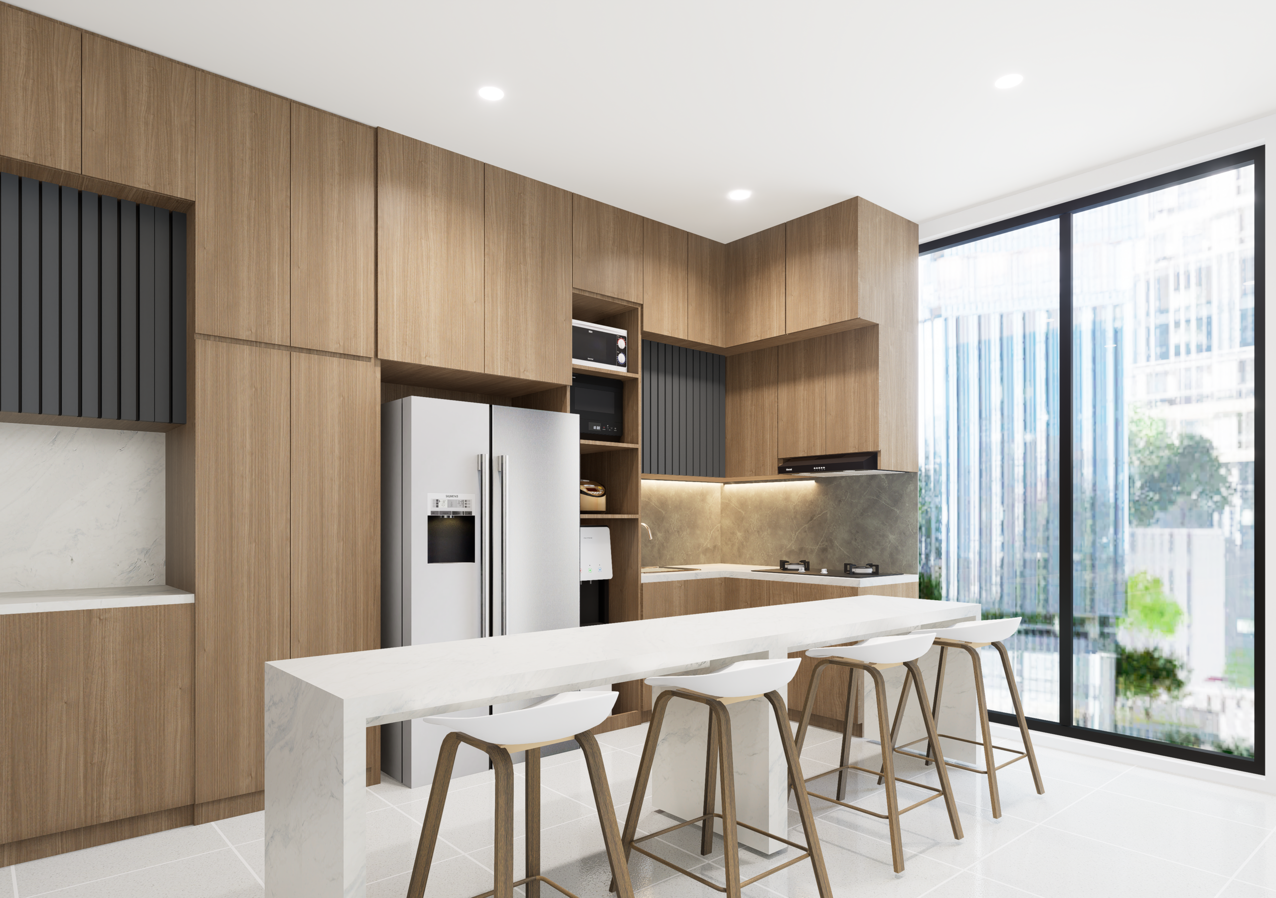 Area Dapur jika didesain dengan baik memudahkan pergerakan di dapur dan menambah estetika sehingga membuat bunda semakin betah bekerja di dapur